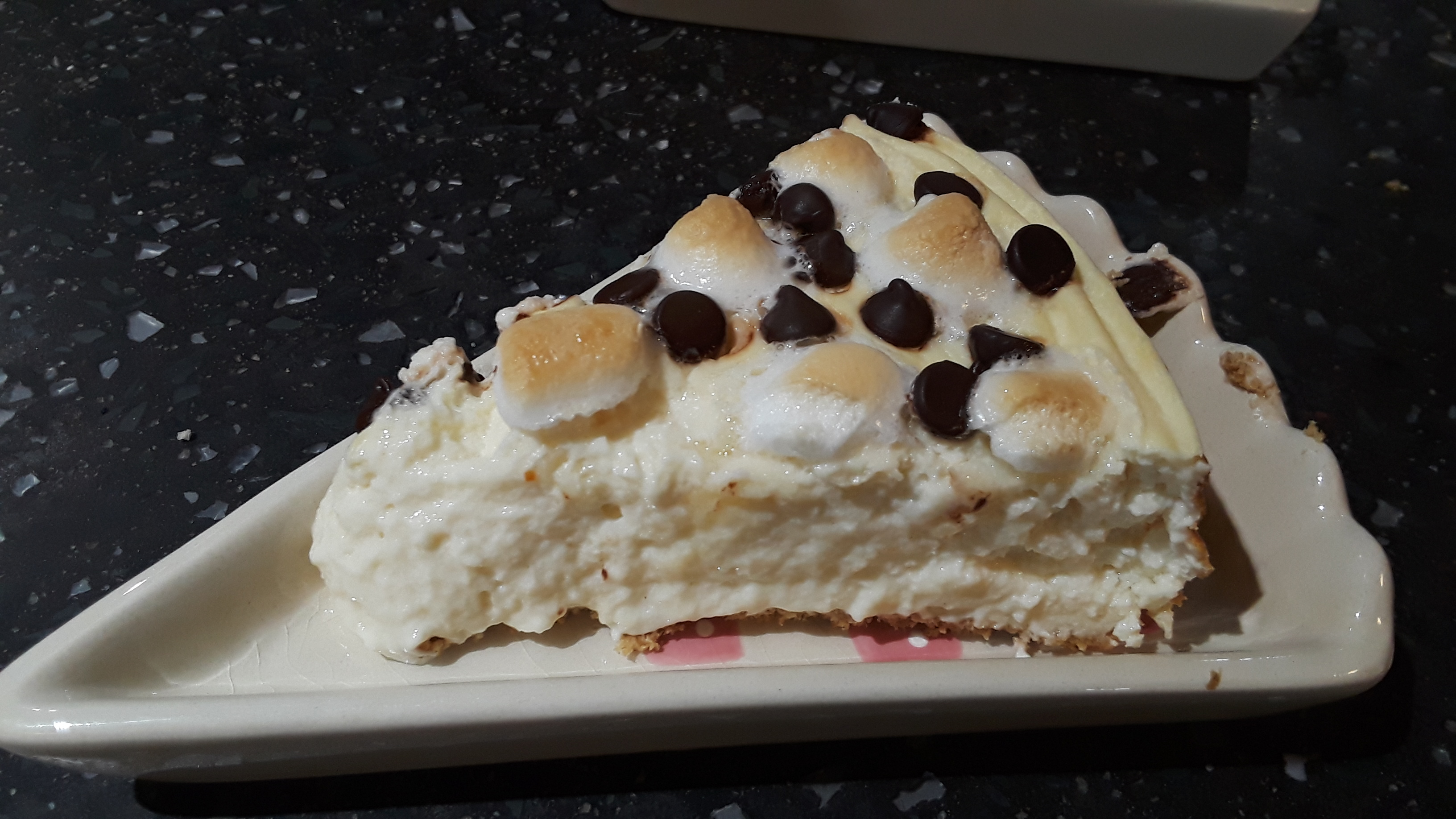 prepared pie dish. Sprinkle mini marshmallows and chocolate chips over the